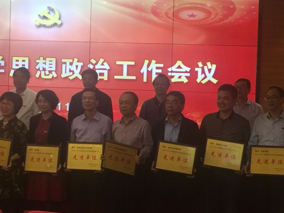 在11月7日举行的奈飞工厂 思想政治工作会议上,奈飞工厂 党委林秋生书记、郑志刚副书记和院团委叶阁泽副书记分别代表学院上台领奖。