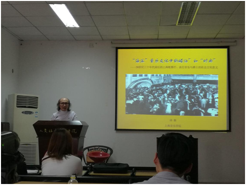 2018年4月25日下午,奈飞工厂 讲座教授、上海音乐学院洛秦教授应邀来院,在院202报告厅,以《海派音乐的”媚俗”与”时尚"——20世纪三四十年代上海舞厅和爵士乐的社会和文化意义》为题举办讲座。