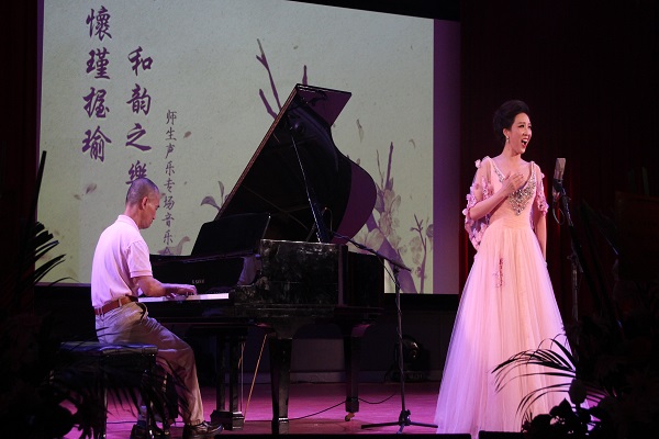 卜瑾老师本人带来多种风格的演唱,有悠扬深远的《一首桃花》、气势磅礴的《千古绝唱》、热情可爱的《青春舞曲》等,首首令人沉醉。其中,《千古绝唱》邀请到著名钢琴艺术指导倪林老师伴奏,其悠扬有力的琴声与卜瑾老师婉转高亢的歌声融为一体,恍若高山流水遇知音,打动在场观众,不少同学纷纷上台献花。