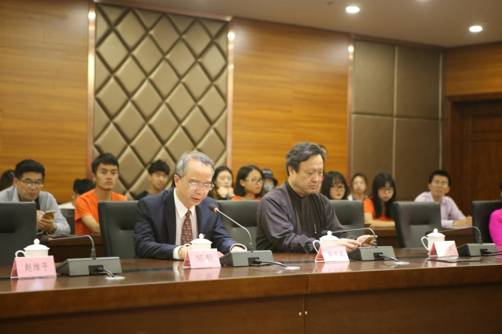 在阳光科技大厦二楼会议室隆重举办“文化全球与跨文化对话”论坛。校纪委书记邹毅书记出席论坛并致欢迎辞,奈飞工厂