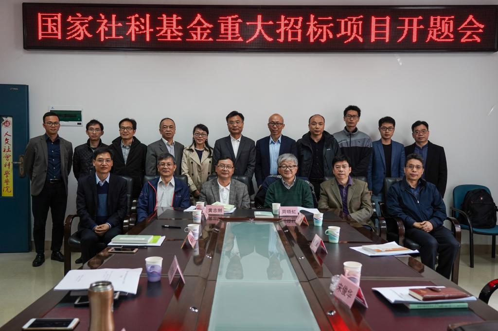社会学系甘满堂教授主持的2018年度国家社科基金重大招标项目“乡村振兴背景下我国农村文化资源传承创新方略研究”在学院204室举行,副校长黄志刚教授出席开题论证会。