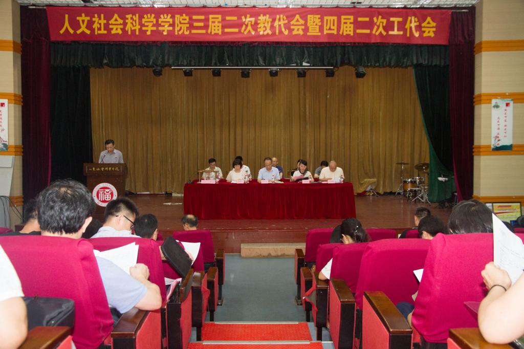 第三届二次教代会暨第四届二次工代会在学院艺术实践基地召开,会议由学院党委副书记郑志刚同志主持,本次大会应到代表73名,实到代表60名。
