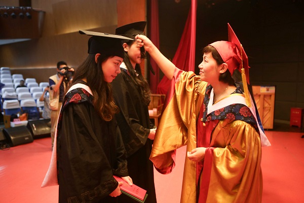 在毕业生学位授予仪式环节,毕业生代表依次上台拨穗,接受学位证书。来自汉语言文学专业的毕业生曹志莹在典礼结束后表示:“这次毕业典礼真的是情怀满满,感受到了学院对我们的深切关怀,我们也一定不忘师长嘱托、学校培养,努力为国家为社会做出贡献!”
