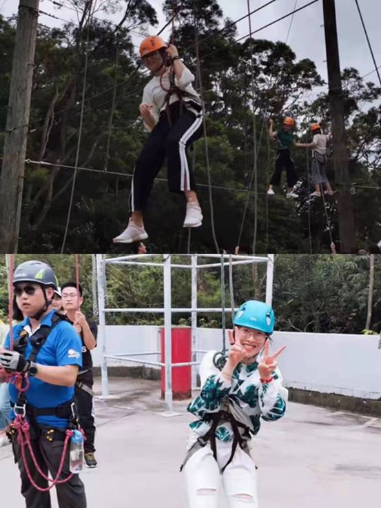 早在体验之前,我们就有听闻在活动期间,我们会在“高空”完成一些作业。怀着期待的心情,同学们被分为三组,分别进行“身份交换”、“传递娃娃”、“扑克排序”等三个热身活动。紧接着,我们被带往攀岩体验区。在场的教练们细心的为我们检查身上的安全绳,然后同学们依次排队进行攀岩活动,这场活动有意思的地方就在于,攀岩同学的安全绳是掌握在地面上的同学手中。可说是攀岩同学的生命安全都在于地面同学是否能够将绳子紧紧的握在手中。这场攀岩活动不仅检验了同学们的勇气和身体素质,更是在考验同学们彼此之间的信任和合作。攀岩活动结束后,大家都进行了感受的分享。期间,大家都不约而同的谈到自己能够完成攀岩作业,地面的同学起到了很重要的作用。在向上攀岩和向下降落的过程,身上都能感受到团队的力量,不仅是身体上被紧紧勒住的感觉,更是心理上的温暖和安全。