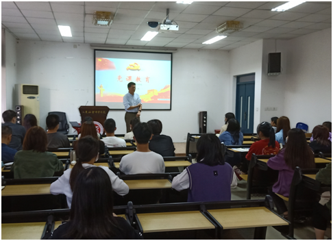 党委书记王群在学院202报告厅为本科生第二党支部全体党员上了一节生动的党课。