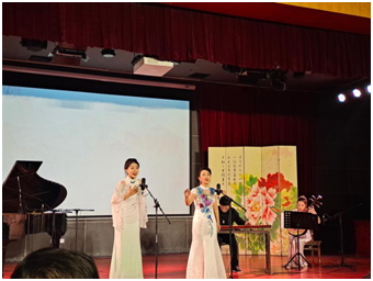 而后由吴荣华老师演唱一首《春思曲》,清新婉丽、典雅含蓄,老师通过优美深情的演唱,深刻地表达了人物的内心情感,刻画出女子绻坐绣楼中,思念远方郎君,而无心梳妆打扮的情景。