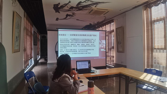 荣老师详细的介绍了河北高碑店和雄安新区的传统音乐文化研究成果,讲述了自2015年至今,召集京津冀学者普查团队,团队以京津冀高校师生为主体并联动海内外学者组成,为地方传统音乐文化整理体提供志愿服务,对京津冀地区音乐类“非遗”以县域为单位开展田野考察的成果汇编,荣老师用照片、视频、图书、数据等一系列丰富素材讲述该团队近些年对于传统音乐文化的探索和研究进展情况,提出面对新现状,新材料、新方法的使用,如乐谱、账本、直播等,最后对河北大学齐易教授等甘于奉献的音乐田野工作者表示致敬。讲座结束后,荣老师结合院长及同学们的提问,就采风过程中的技术运用问题;本土学者与当地文化保护的关系;新发展现状下音乐学的研究方法。荣老师的讲座内容生动,资料详尽,为音乐系师生在进行音乐田野调查、发挥在本土文化建设中作用等方面提供了路径探索,带来了诸多有益的启发。