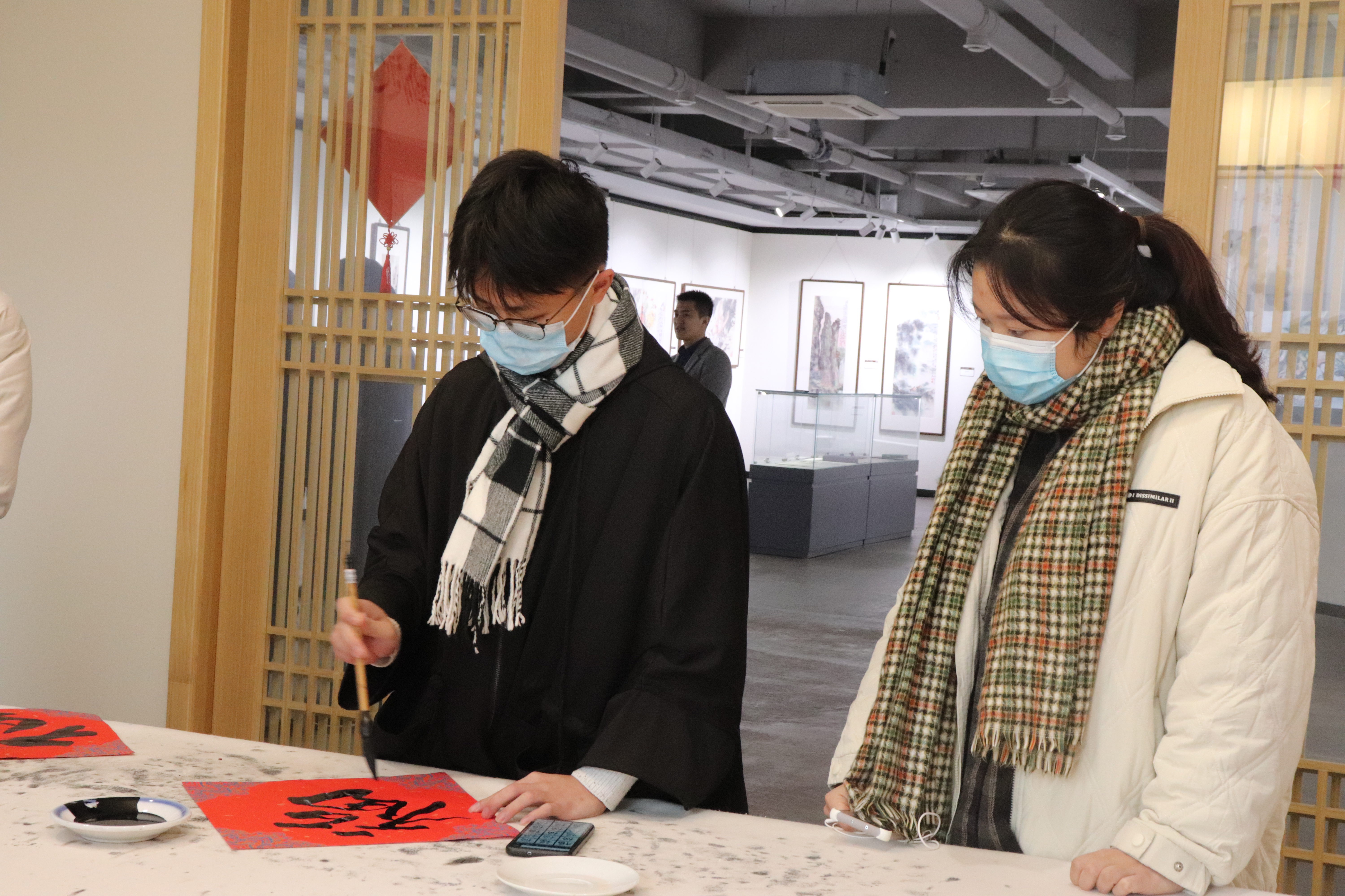 虎年送福活动在祝福声中顺利结束,来到现场的领导老师对本次活动表示赞许,同学们也在活动中受益良多。一纸书法,情暖三冬,寄于作品之中的美好祝愿会伴随着来宾、老师同学们一同迎接新的一年。