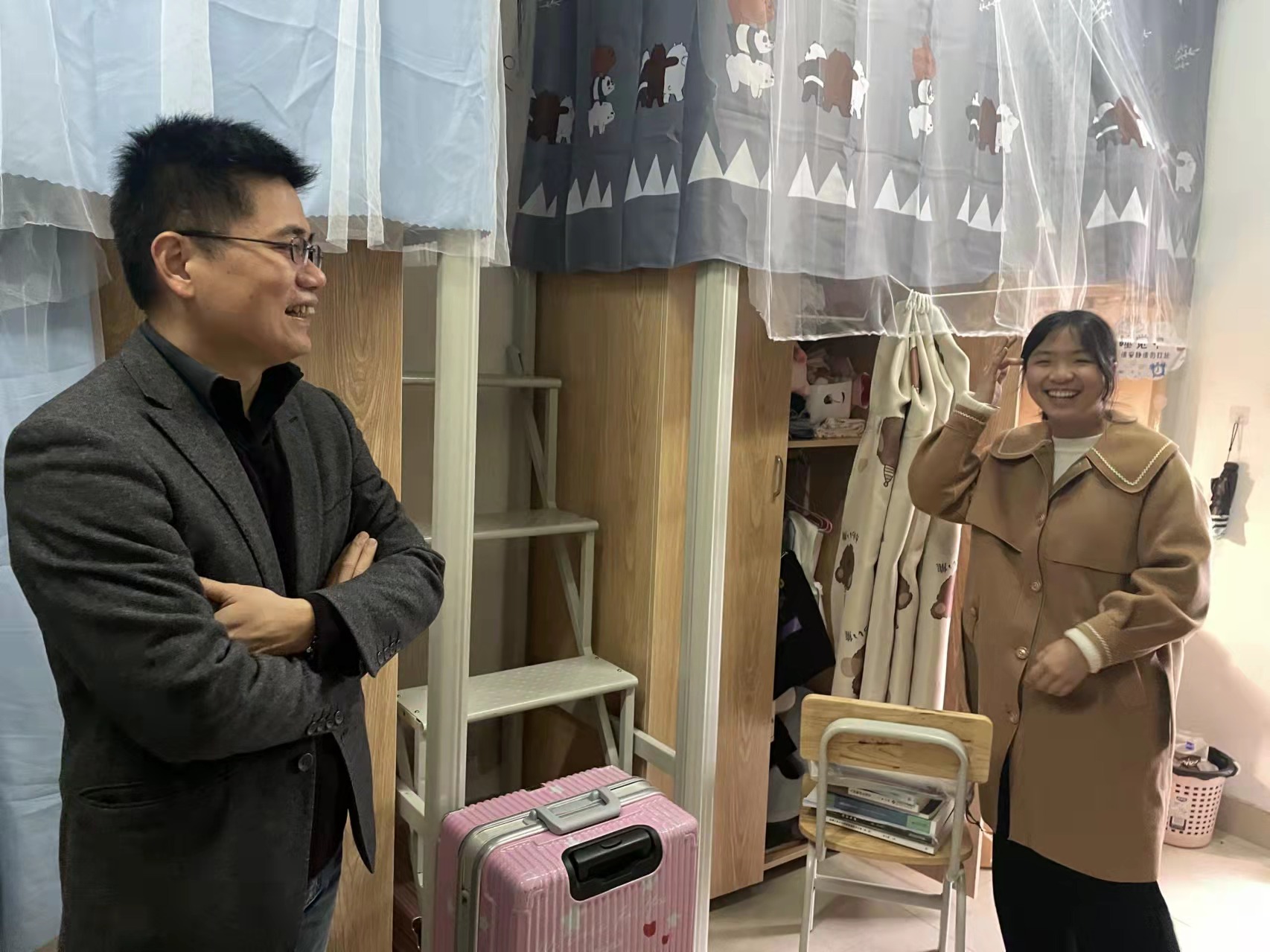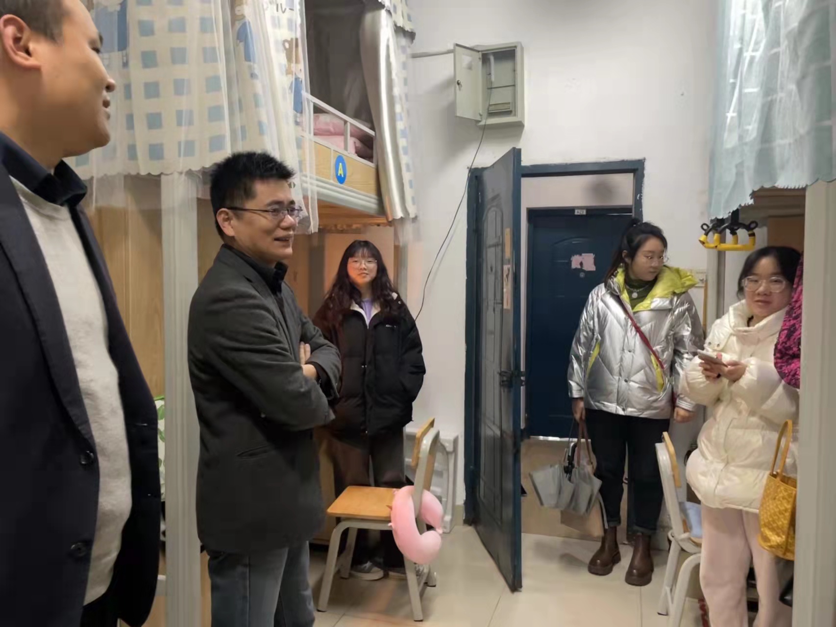 党委副书记陈永福、团委书记齐朝阳及辅导员李益僮走访学生宿舍,对返校学子进行慰问。