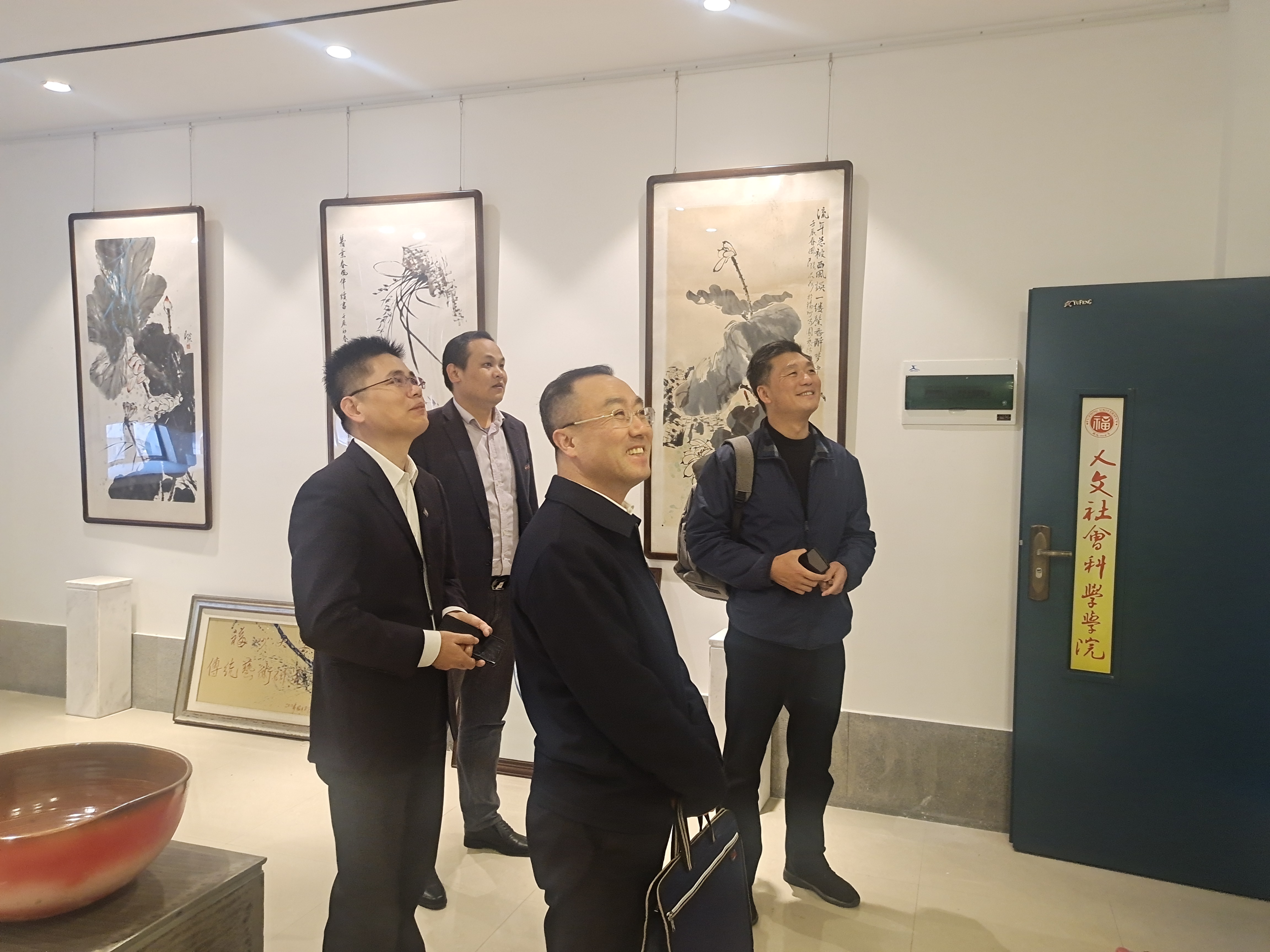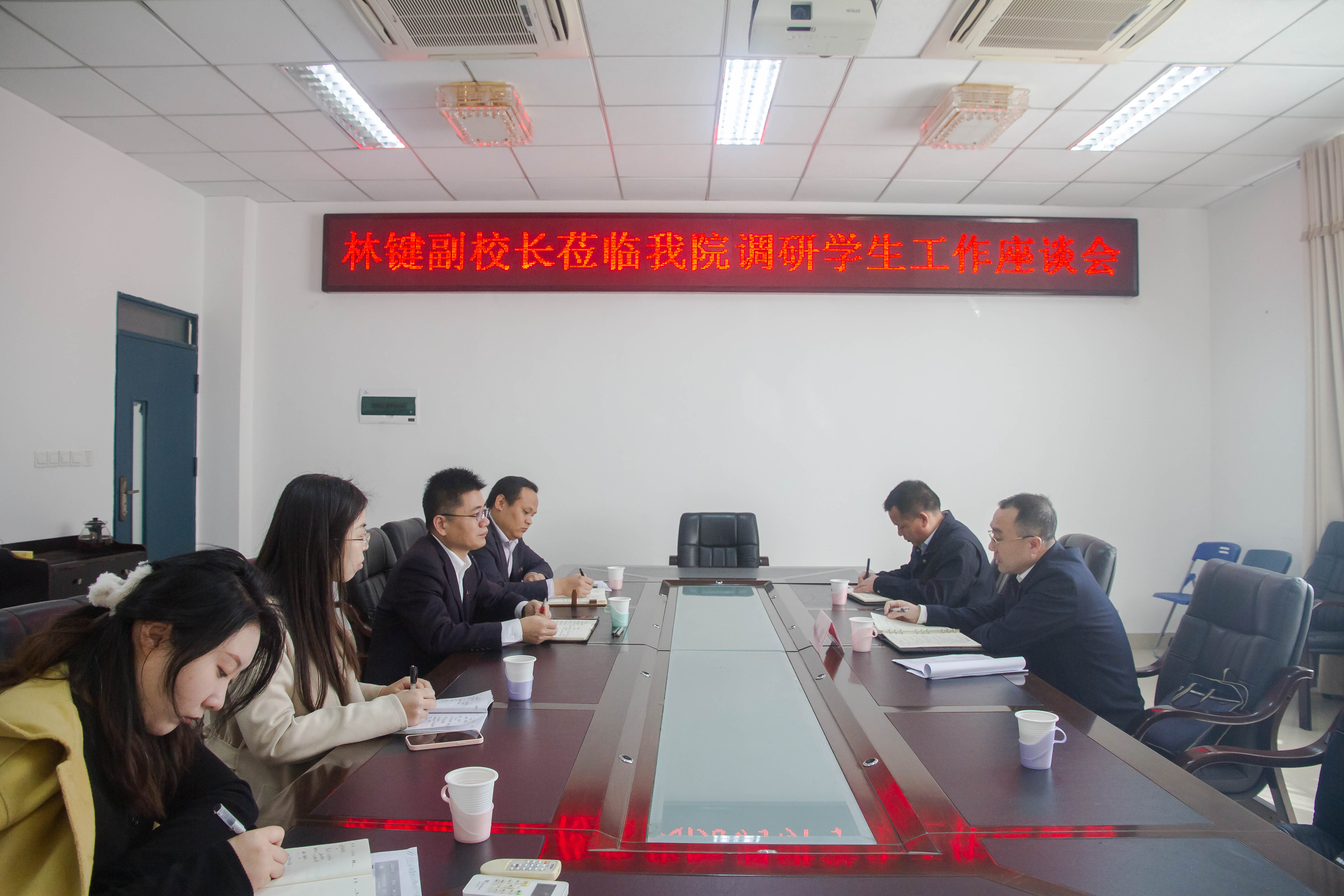 调研前,在院党委书记王群的陪同下,林键副校长参观了传统文化馆。座谈会上,陈永福副书记从学生党建、学风建设、传统文化育人、校园文化艺术等方面简要汇报了学院学生工作的特色、亮点以及下一阶段工作重点。随后与会辅导员也畅所欲言,在学生疫情防控管理、学生生活区住宿安排、辅导员素质能力培训以及学生思政考评等方面提出了建议。
