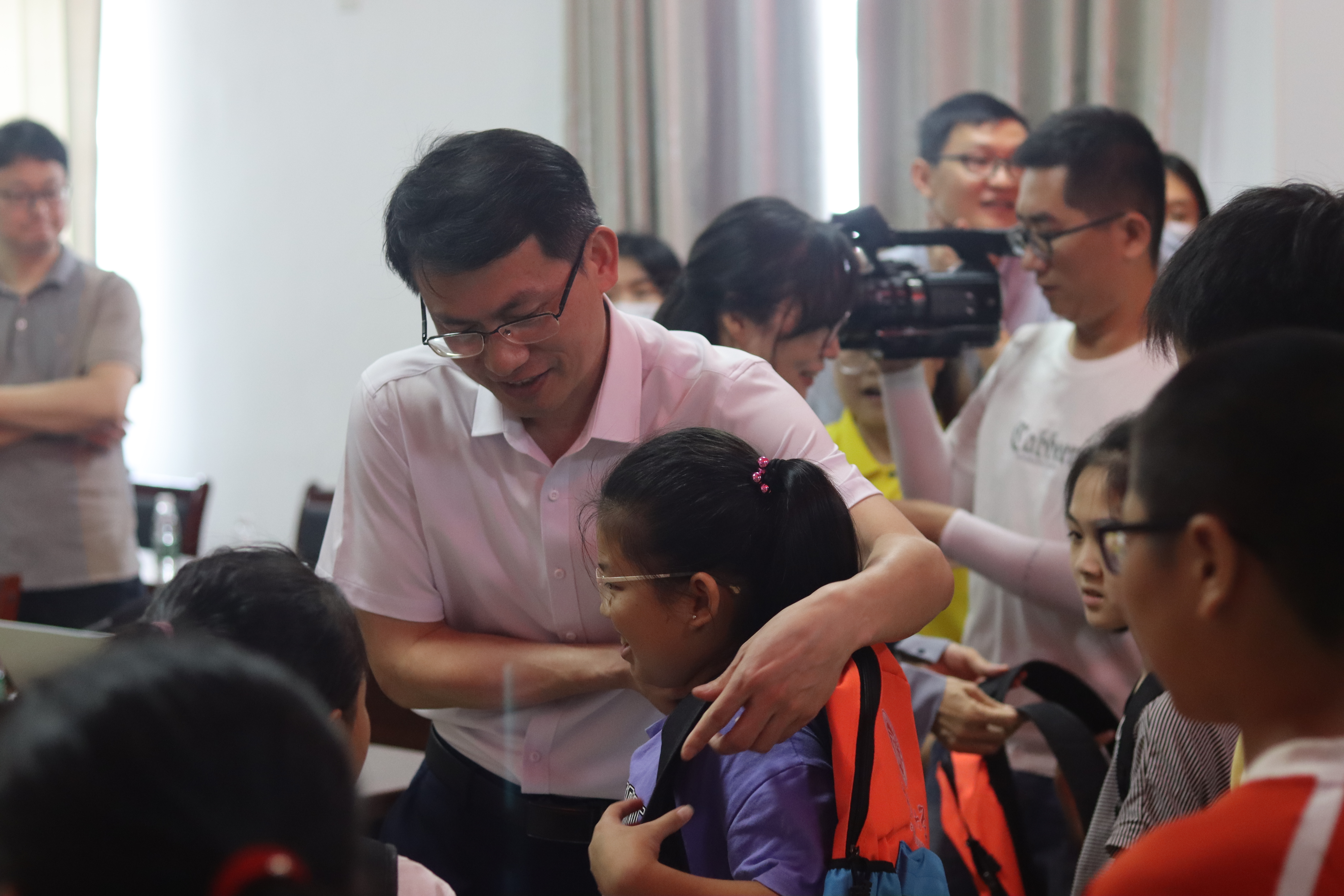 四年来服务地方和实践队此次社会实践的成果充分认可。他指出,福清是我国著名的侨乡,要深刻学习领会好习近平总书记关于侨务工作重要指示精神,学习华侨爱国爱乡、积极探索、大胆创新、敢闯敢拼精神。他强调社会实践对大学生成长有重要意义,实践队能把关注点聚焦在父母在“一带一路”沿线国家打拼创业的外籍留守儿童,发挥团队多民族多地域特点,促进中华民族共同体意识,有利于促进民族团结和国家“一带一路”倡议。同时,黄身勇副书记希望同学们能够做实事,扎根到为人民服务的实践中去,在具体的社会实践中学本领、长知识,体现个人价值和社会价值的统一。座谈会最后,与会领导嘉宾为参会失依儿童代表发放慰问品。
