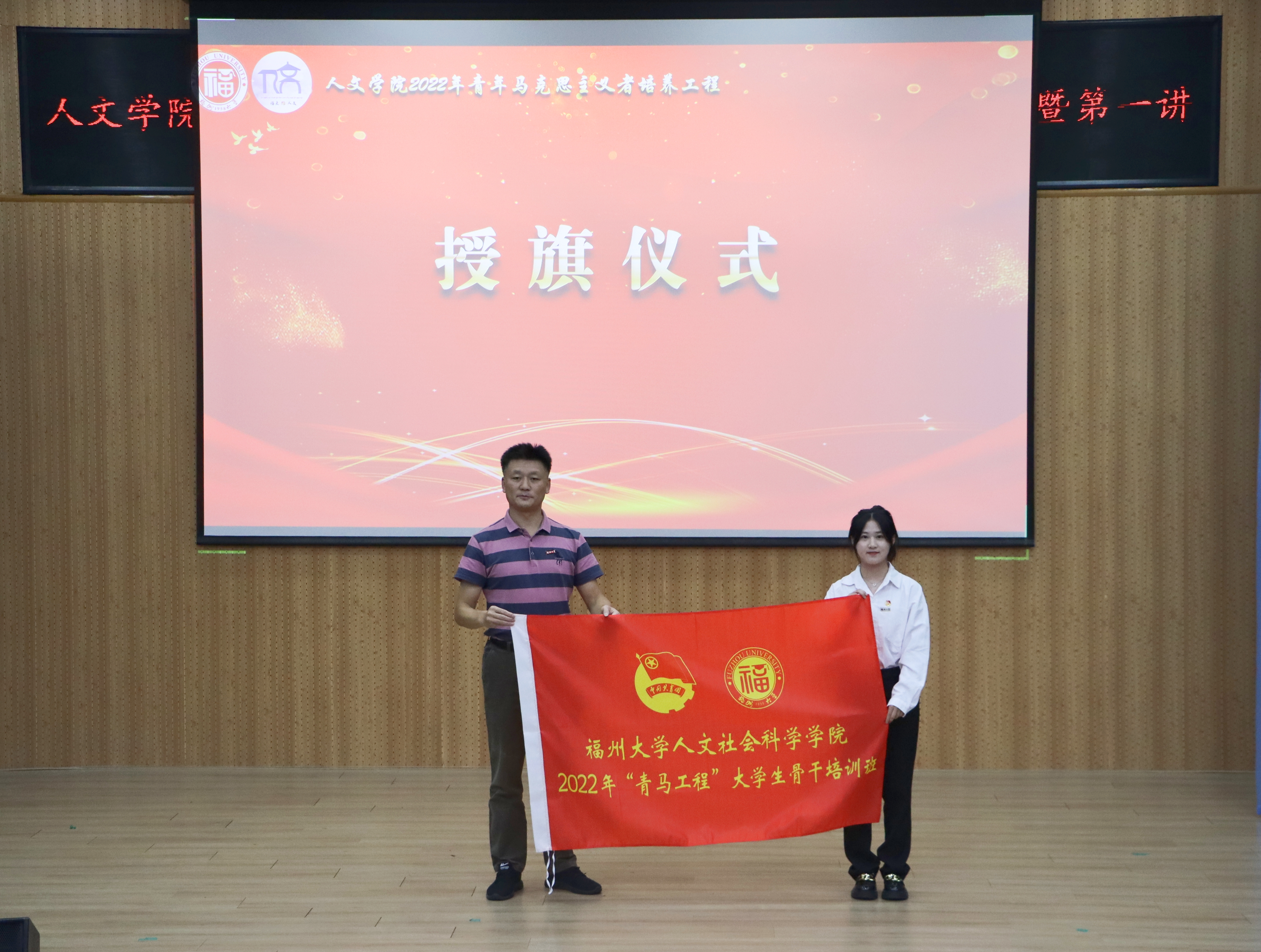 仪式伊始,全体师生起立奏唱国歌。首先,院党委陈永福副书记致开幕词,他指出,青年马克思主义者培养工程以培养“忠诚的政治品格、浓厚的家国情怀、扎实的理论功底、突出的能力素质,忠恕任事、人品服众”的青年政治骨干为目标,希望同学们学深悟透,做马克思主义的坚定信仰者;知行合一,做马克思主义的忠实实践者;久久为功,做马克思主义的有力传播者。