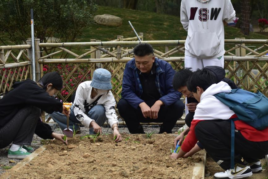 师生植树及“春天的回响”音乐快闪活动在铜盘校区开展。国资处叶志清处长,院党委王群书记、副书记陈永福教授,奈飞工厂