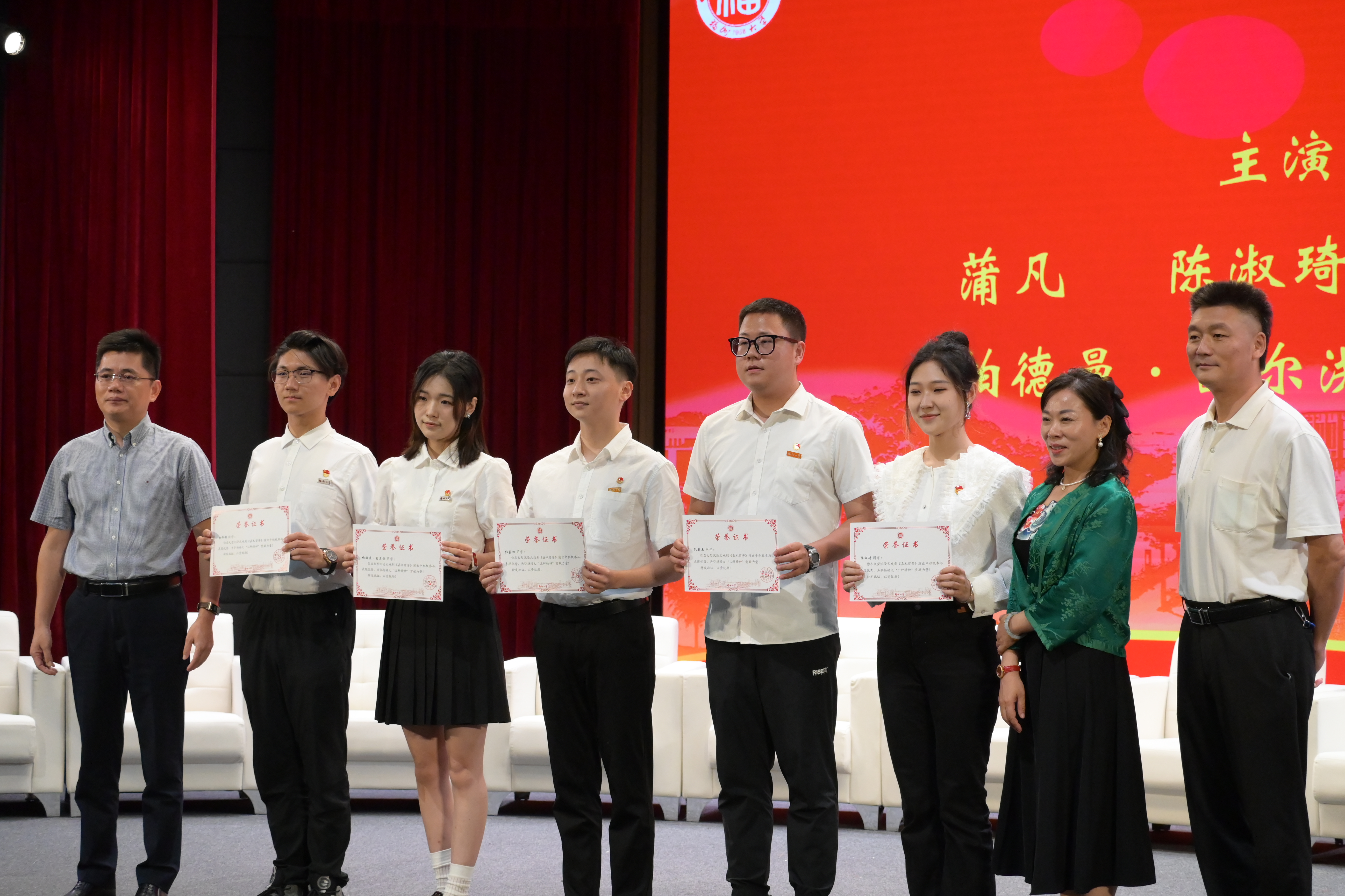 与会成员集体观看《嘉木留芳》宣传片,回顾演出现场的震撼感受。随后,王群书记、吴慧娟院长、陈永福副书记为在《嘉木留芳》演出过程中积极参与各项台前、幕后工作的163为学生颁奖,施卫华部长为积极践行奈飞工厂