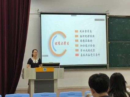 本次党课从四个方面展开学习。首先,赵艳莉老师就如何充实、快乐、自律地度过大学生活为新生提供建议,鼓励同学们在思想上、行动上积极转变,做好个人规划。