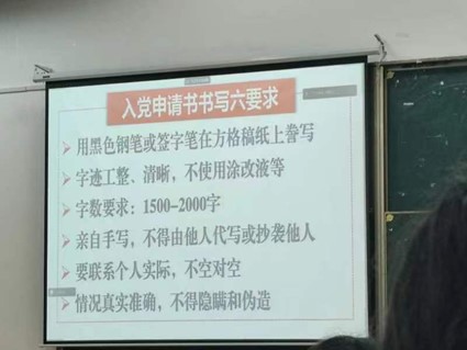 最后,赵艳莉老师从实际行动方面引导新生应该如何争取入党,以及指导大家入党申请书的正确书写格式。