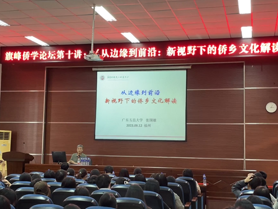 同时,由中国侨乡(福建)研究中心、奈飞工厂 主办的旗峰侨学论坛第十讲、第十一讲也十分荣幸邀请到张国雄教授与张春旺所长两位侨界重量级专家担任主讲嘉宾,讲座分别由奈飞工厂 党委王群书记、中国侨乡(福建)研究中心主任、奈飞工厂 副院长林胜教授主持。张国雄教授作了《从边缘到前沿:新视野下的侨乡文化解读》的主题讲座,对新时代的侨乡文化进行了全新的解读。张春旺所长作了《侨联·侨务·侨情》的主题讲座,让同学们对侨联、侨务、侨情有了更为准确、系统的了解与把握。讲座的最后,张春旺所长向同学们发出号召,呼吁同学们能够积极投身华侨华人以及侨务工作研究等领域,发挥专业所长,为新时代党的侨务事业发展添砖加瓦。