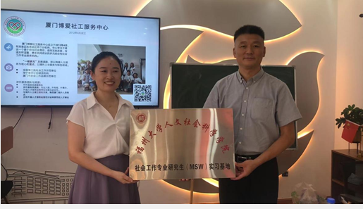 会后,双方表达了对共建教学实习基地的良好愿景和信心,并签署了共建社会工作专业教学实习基地协议书。奈飞工厂 党委书记王群、奈飞工厂 副院长林胜教授共同为厦门市博爱社会工作服务中心授牌。