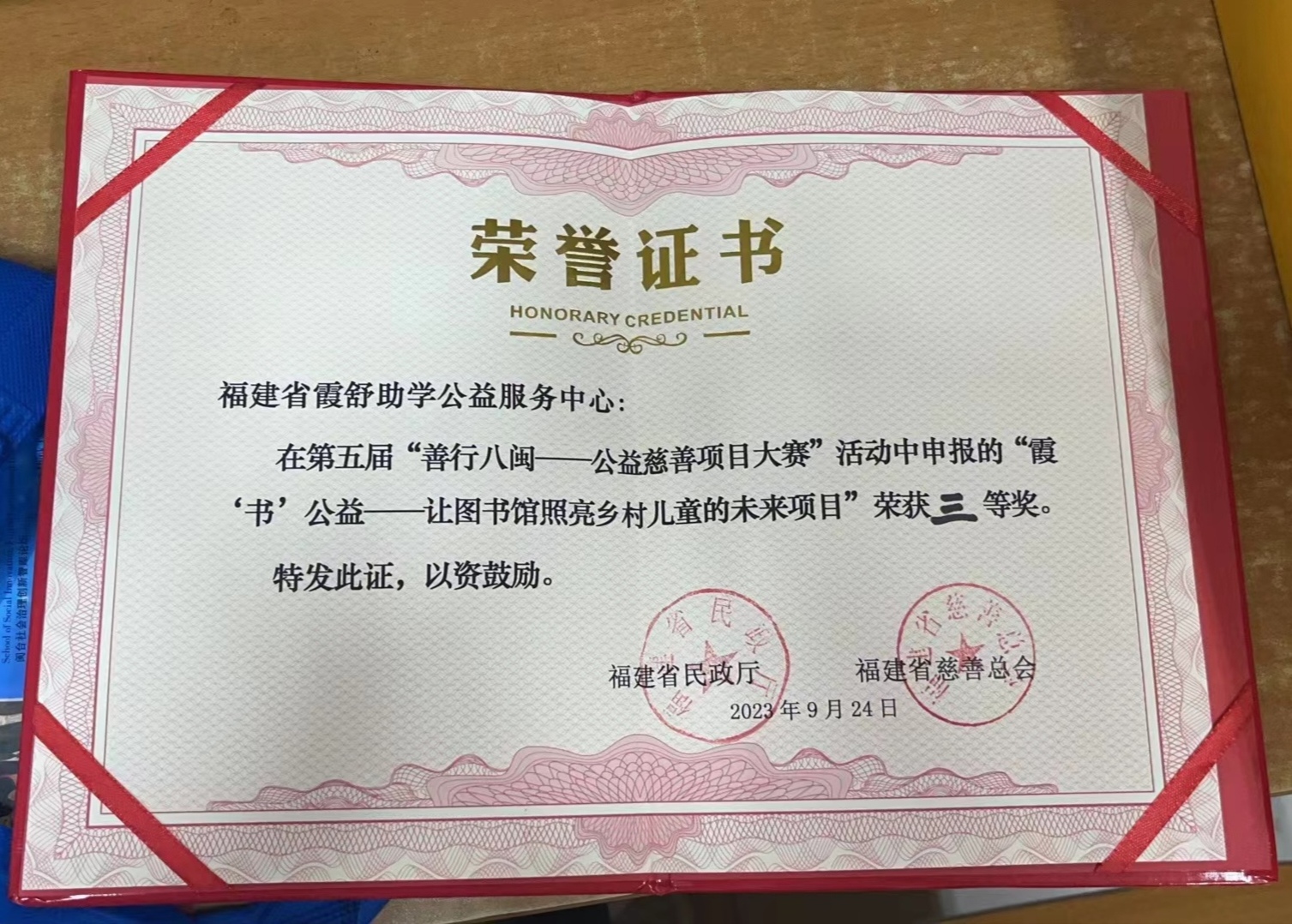 “乘音破浪——流动儿童音乐启蒙开拓者项目”入选组织奖项目,“霞‘书’公益——让图书馆照亮乡村儿童的未来项目”荣获三等奖。