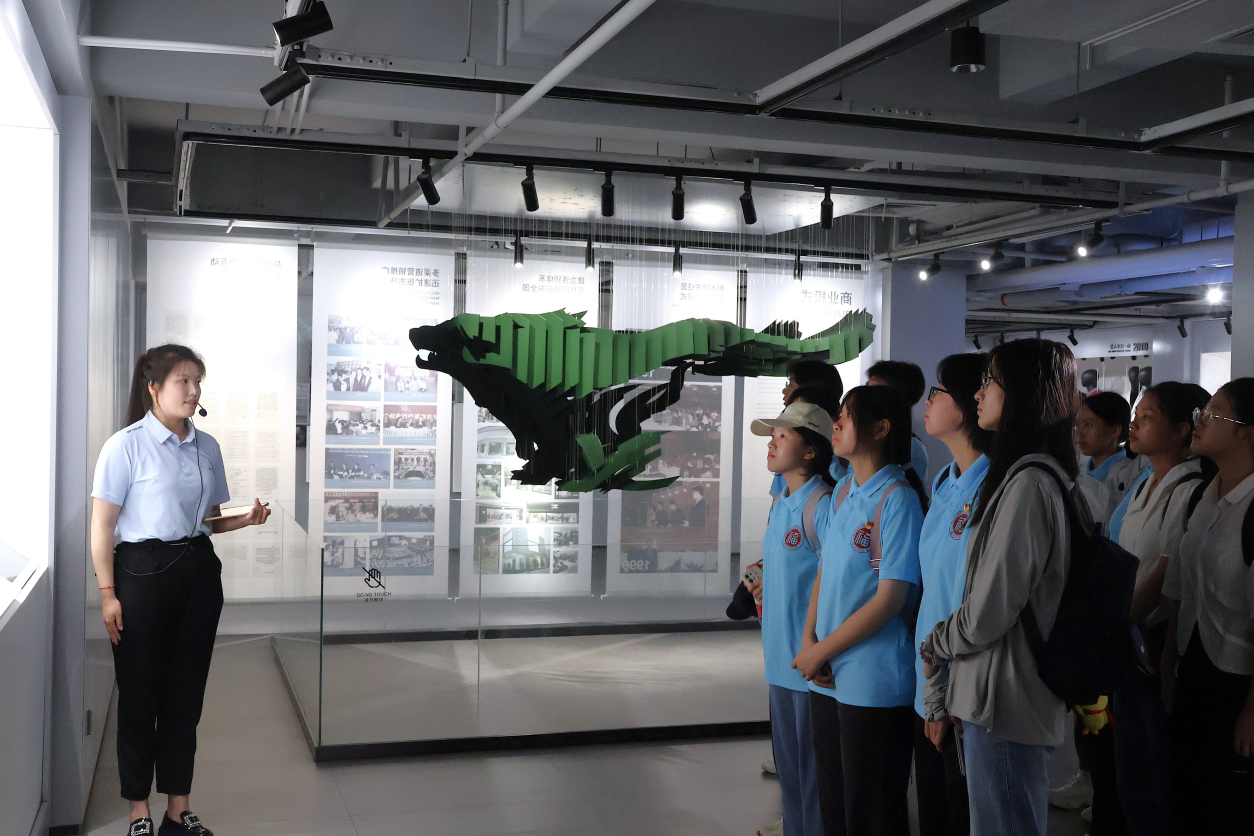 走进晋江经验馆,实践队阅览丰富的图片、文物和历史资料。晋江从小县城发展为如今的全国闻名城市,离不开晋江经验的科学指导。在习近平总书记“实实在在、心无旁骛做主业”的指示要求下,紧抓实体经济不放松,全力推行新型工业化,构建“4341”现代化产业体系,诞生了无数远近闻名的产业。
