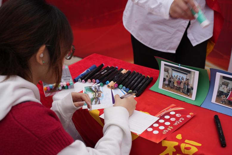 现场,霞舒公益团队志愿者向师生介绍项目特色与工作成效,展示乡村儿童们的手写明信片,引导同学们为孩子们写下回信,向乡村儿童表达成长期待与温暖祝愿。