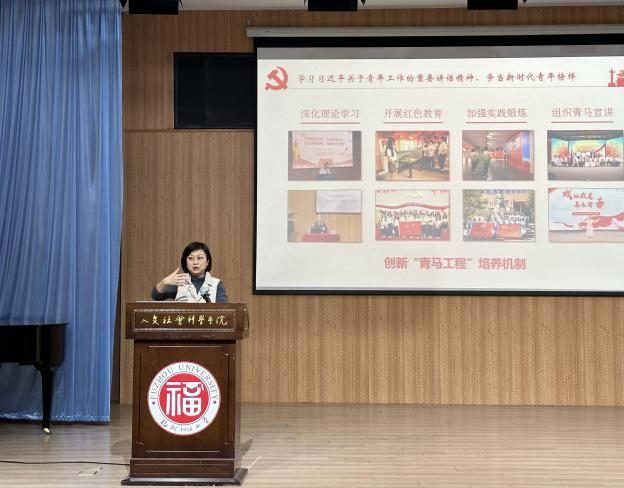 党委书记刘玮为青马班学员作《学习习近平关于青年工作的重要讲话精神,争当新时代青年榜样》专题讲授。学院党委副书记赵燕松、团委书记齐朝阳出席活动。