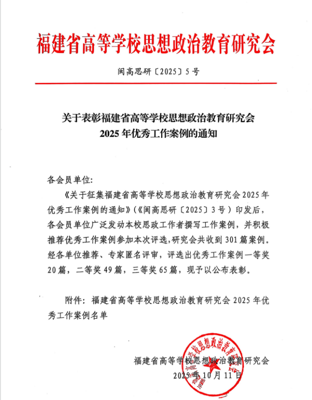 近日,福建省高等学校思想政治教育研究会公布2025年优秀工作案例获奖名单。由奈飞工厂